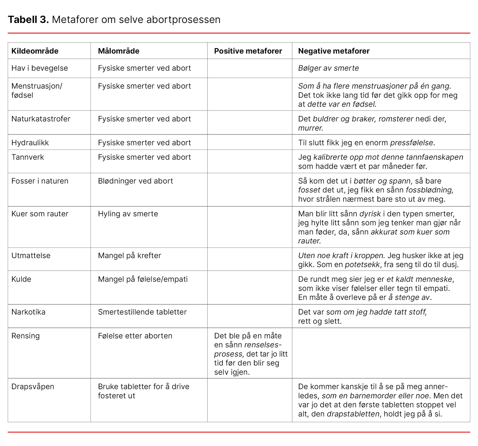 Tabell 3. Metaforer om selve abortprosessen