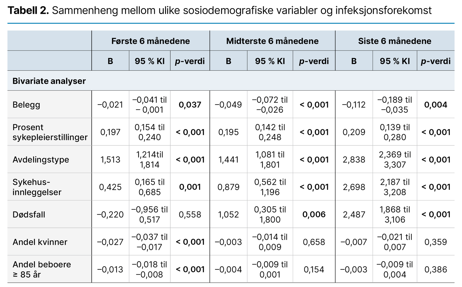 Tabell 2. Sammenheng mellom ulike sosiodemografiske variabler og infeksjonsforekomst
