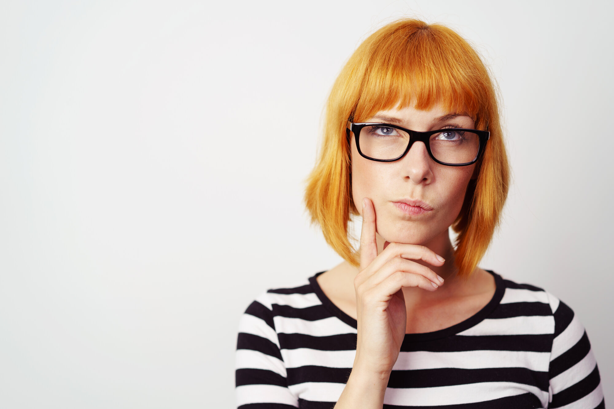 Bildet viser en ettertenksom ung kvinne