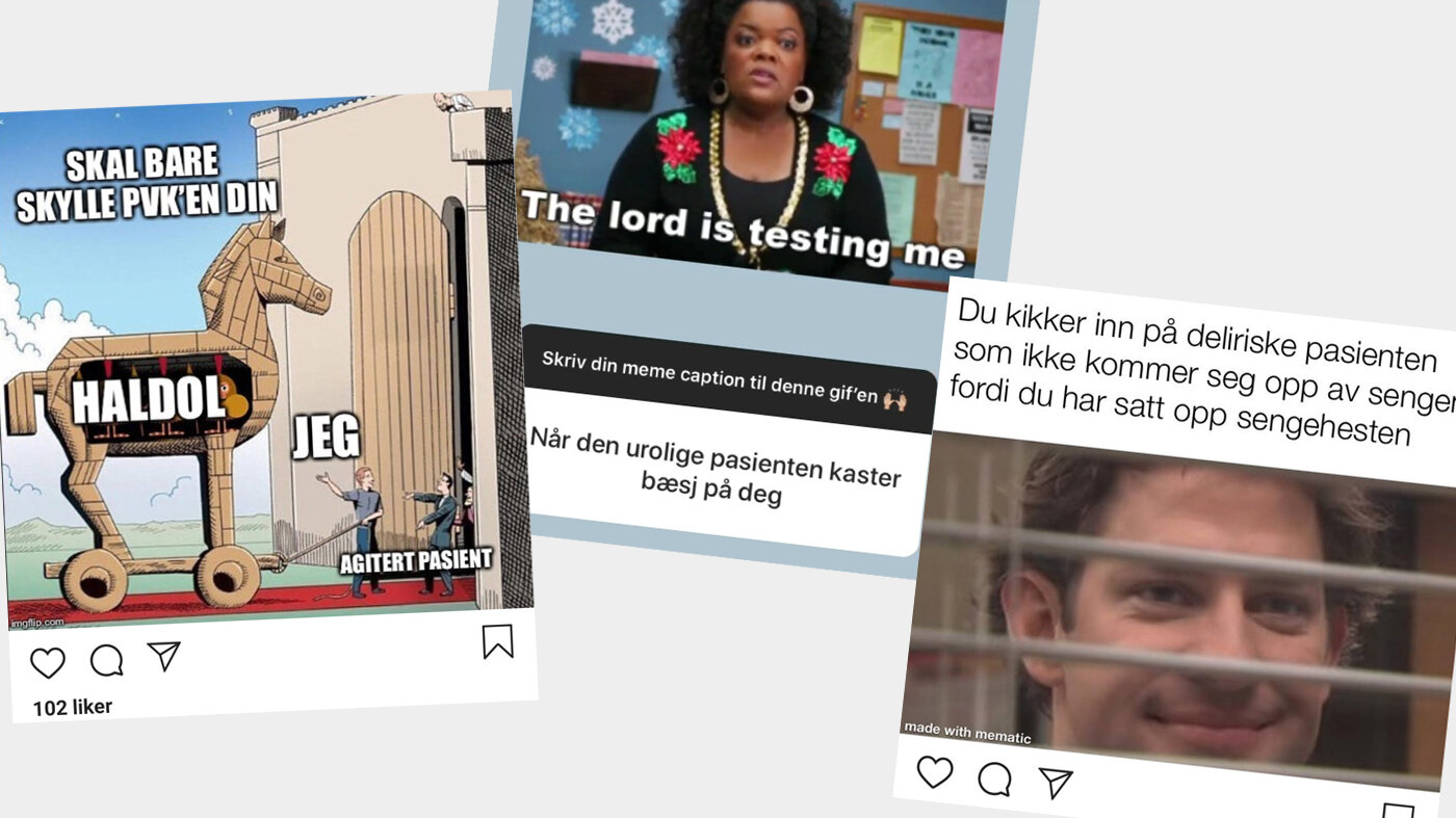 Vi har registrert kontoer med opptil 23 000 daglige følgere som poster memer (bilder, video eller tekst som spres digitalt) med humoristisk innhold. Kontoene driftes av sykepleierstudenter og sykepleiere der mye av innholdet går på bekostning av pasienter og pårørende. Og da er det verken morsomt eller etisk forsvarlig.