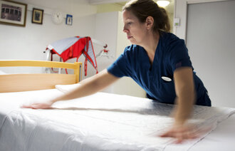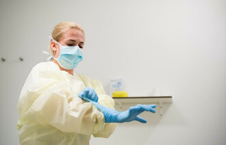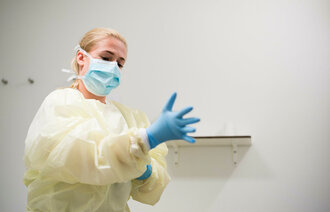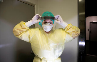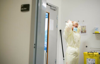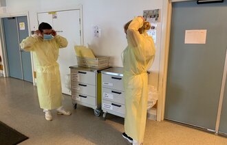 Sykepleierne går minst mulig inn til pasienten og berører bare når det er høyst nødvendig – det vil si når prosedyrer og stell skal utføres. For å beskytte pasienten, har mange eldre vært avskåret fra omgang med sine nærmeste i over en måned. Ingen besøkende har fått komme inn på sykehus, omsorgssentre eller sykehjem.