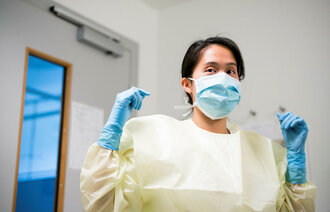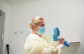 Enten det er gjennom en pc-skjerm, et vindu eller i et direkte møte med pasienten, overfører du som sykepleier omsorg gjennom valg av ord/ordlyd, blikk, håndlag og plassering. Det samme gjelder bak en gul frakk, munnbind og visir.