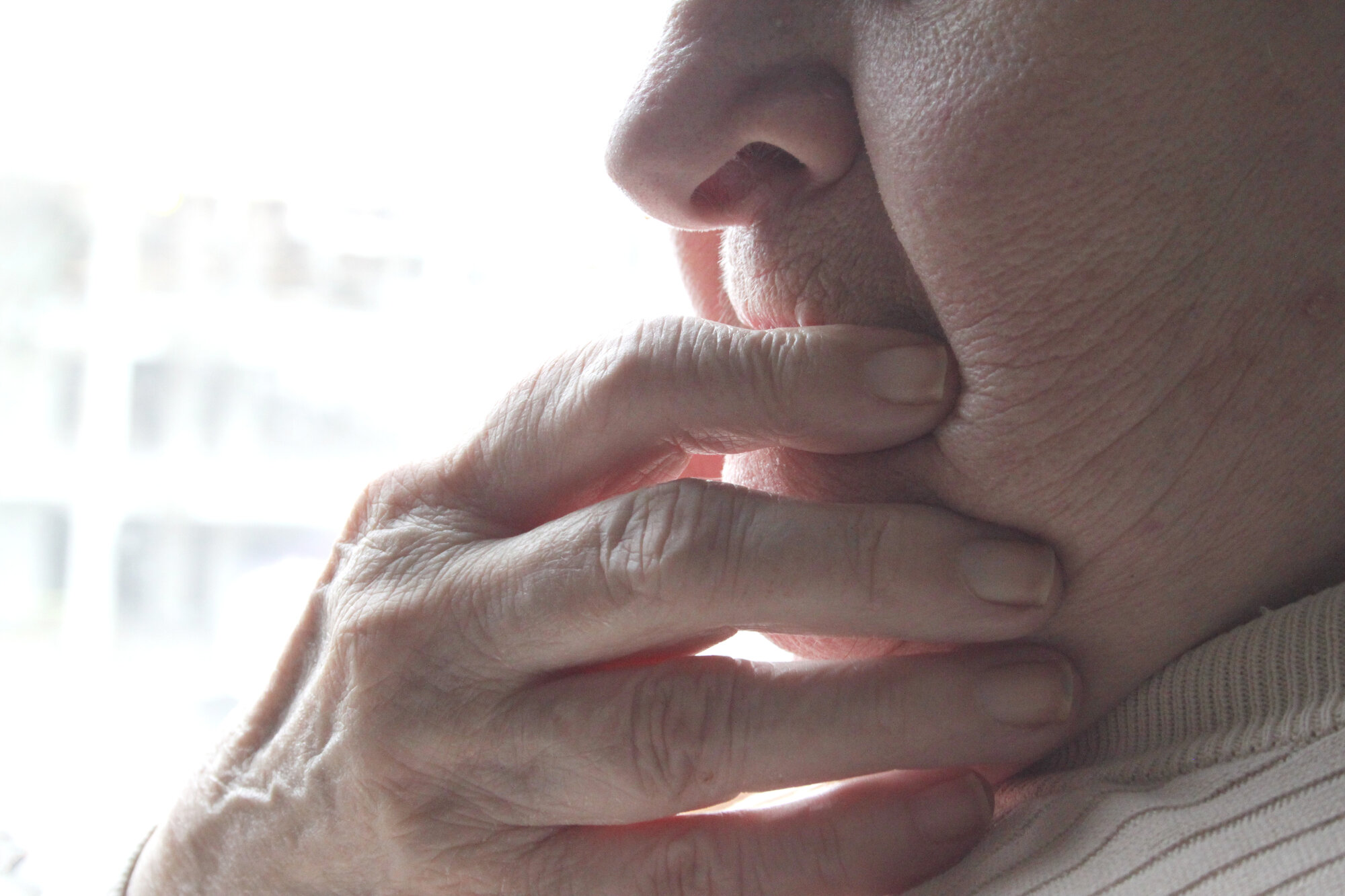 På sengekanten, nærmest mot vinduet, sitter en eldre dame med hendene i fanget. Jeg kjenner henne godt og vet at hun må være på rommet i påvente av testsvaret. Forsiktig spør jeg hva som er i veien og om hun vil prate.
