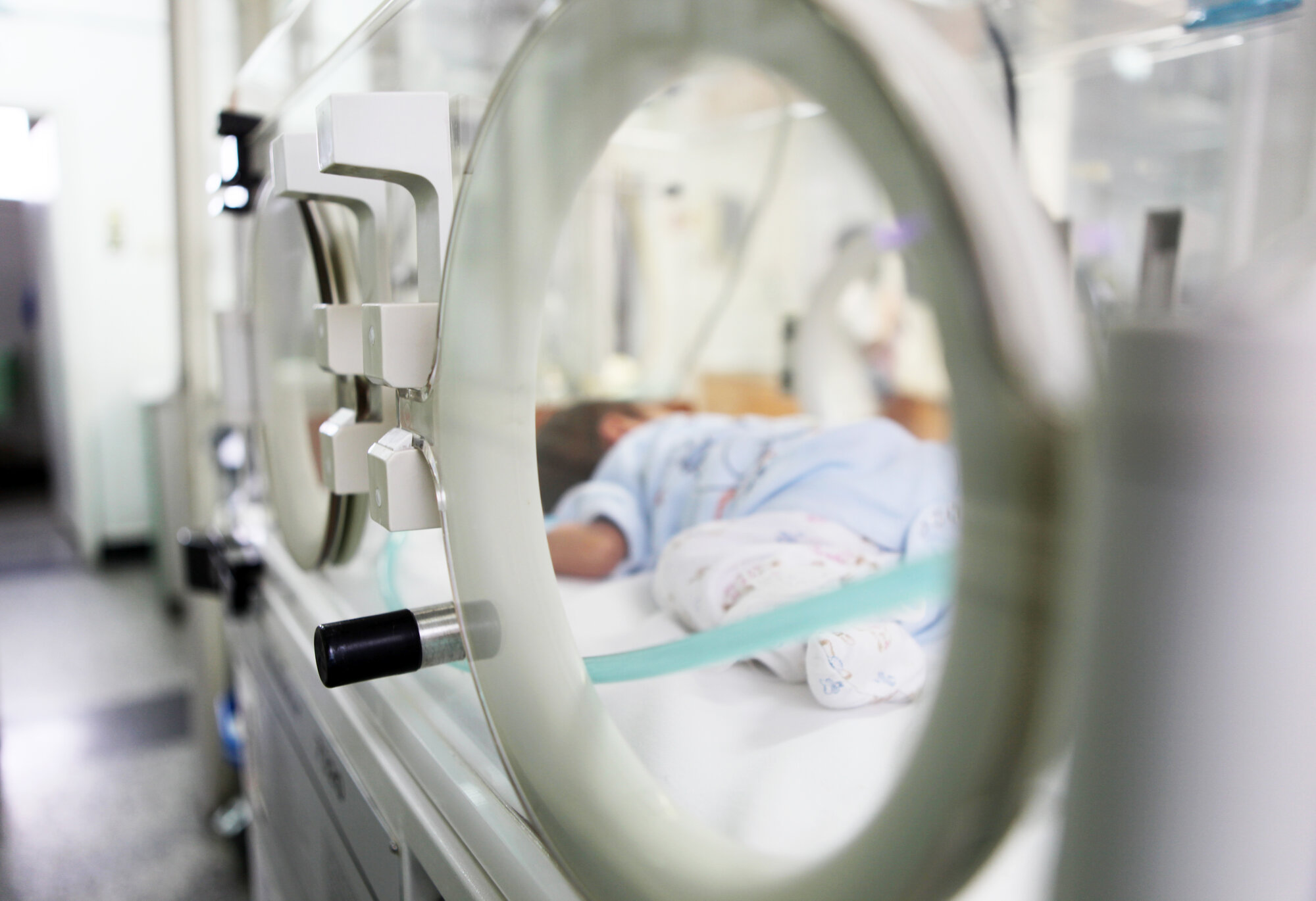 Bildet viser et spedbarn som ligger i en kuvøse