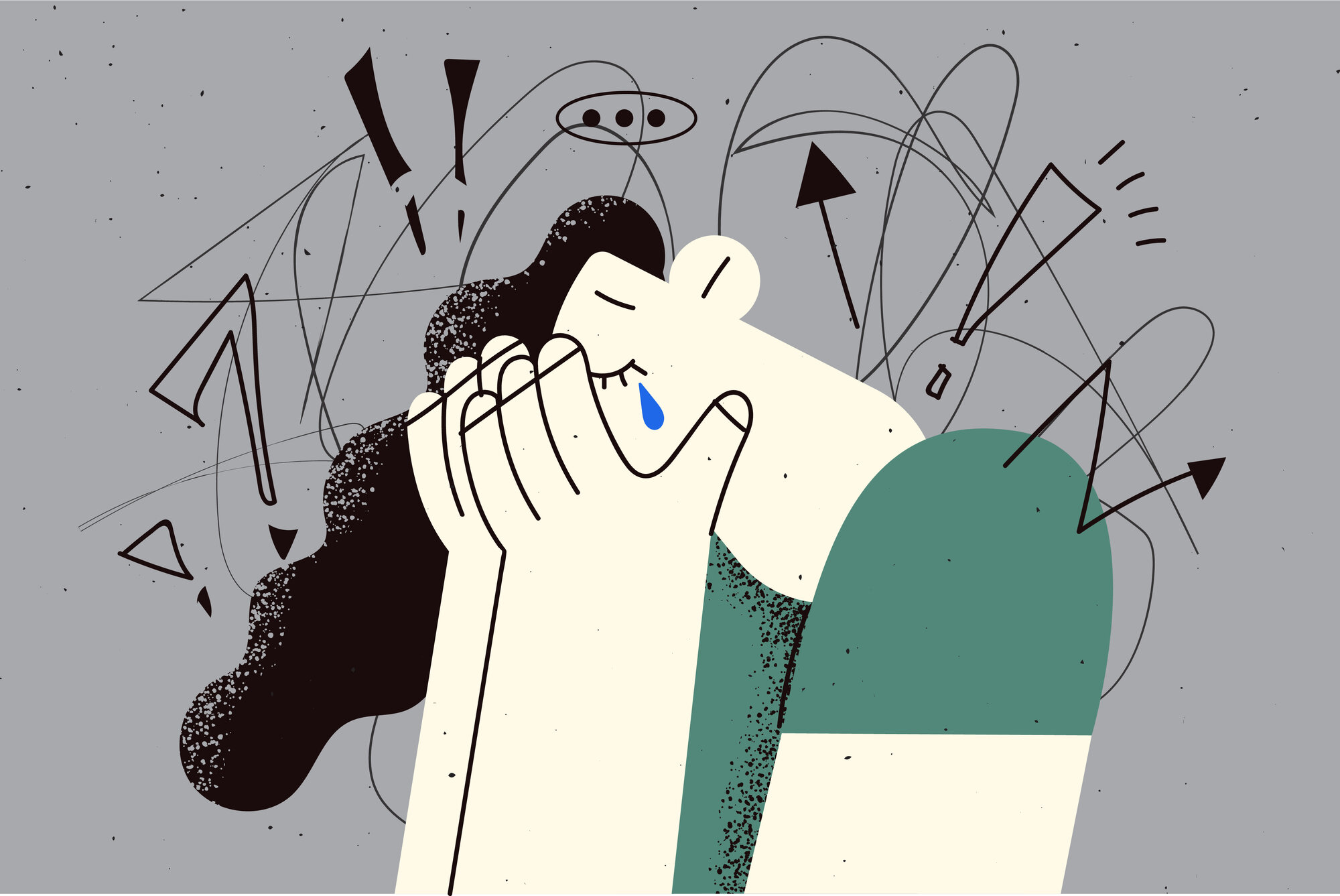 Bildet viser en tegning av en jente som holder seg foran ansikten mens hun gråter