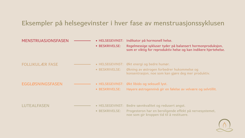 Å forstå hvordan kroppen reagerer i de ulike fasene kan gi kvinner innsikt i sine fysiske og psykiske tilstander og fremme en sunn livsstil. Blant annet ved å kjenne til hvilken effekt hormoner har på kvinnekroppen.