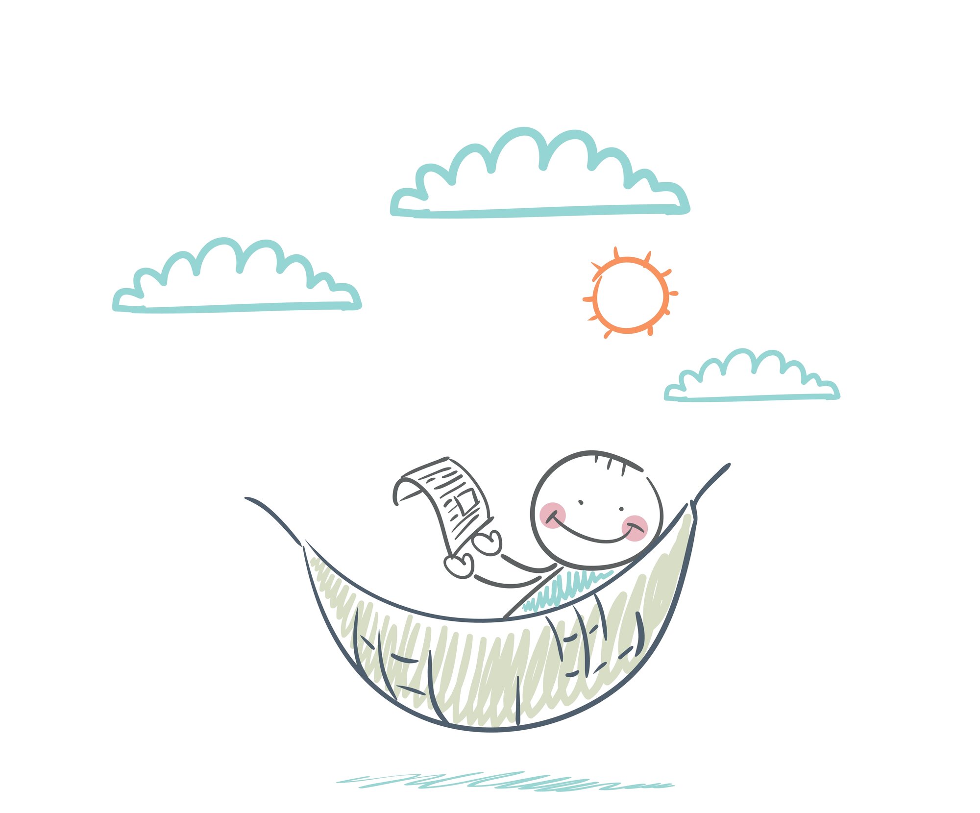 Bildet viser en tegning av et strekmenneske som slapper av i en hammock.