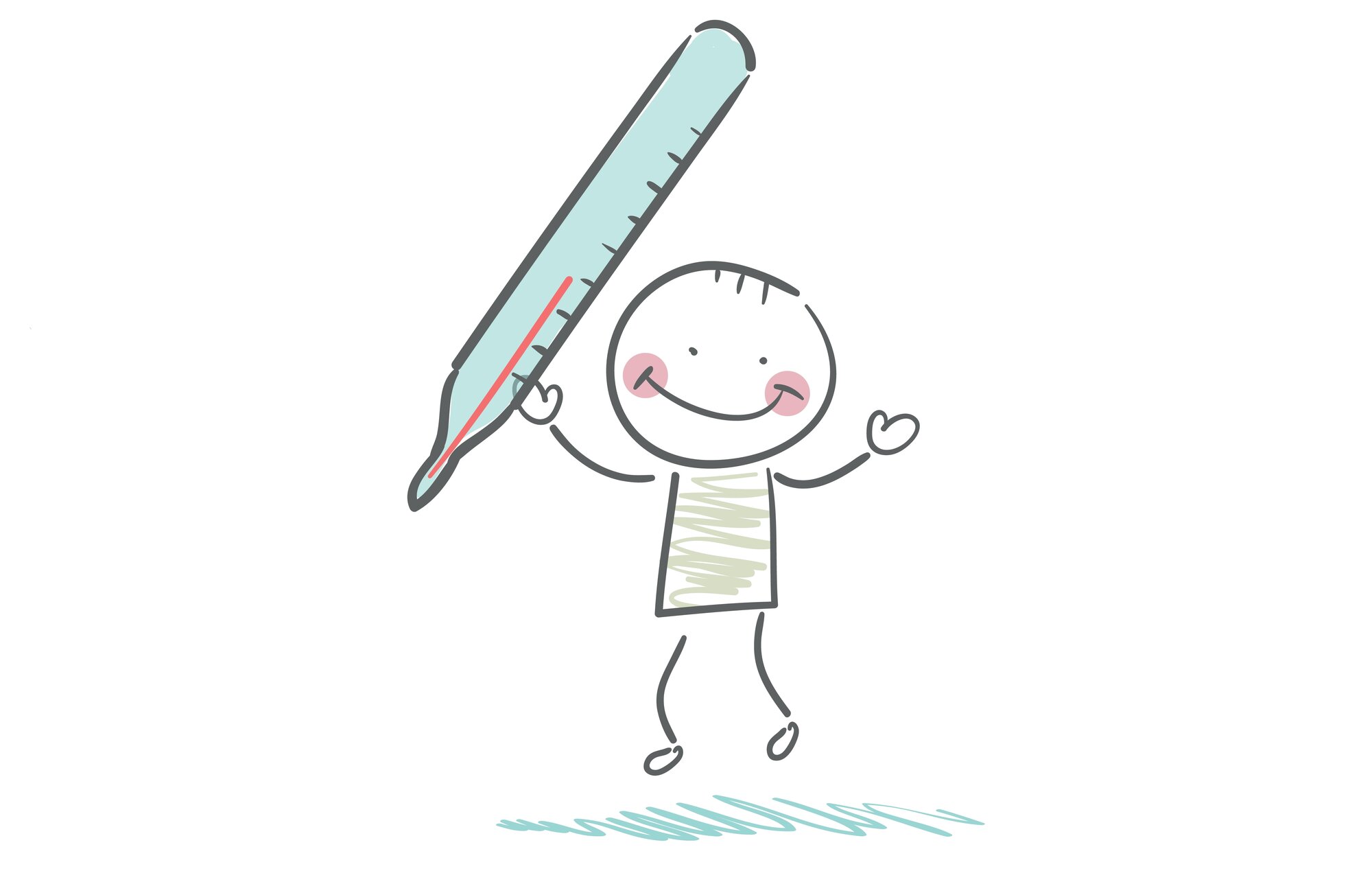 Illustrasjonen viser et strekmenneske som holder opp et stort termometer.