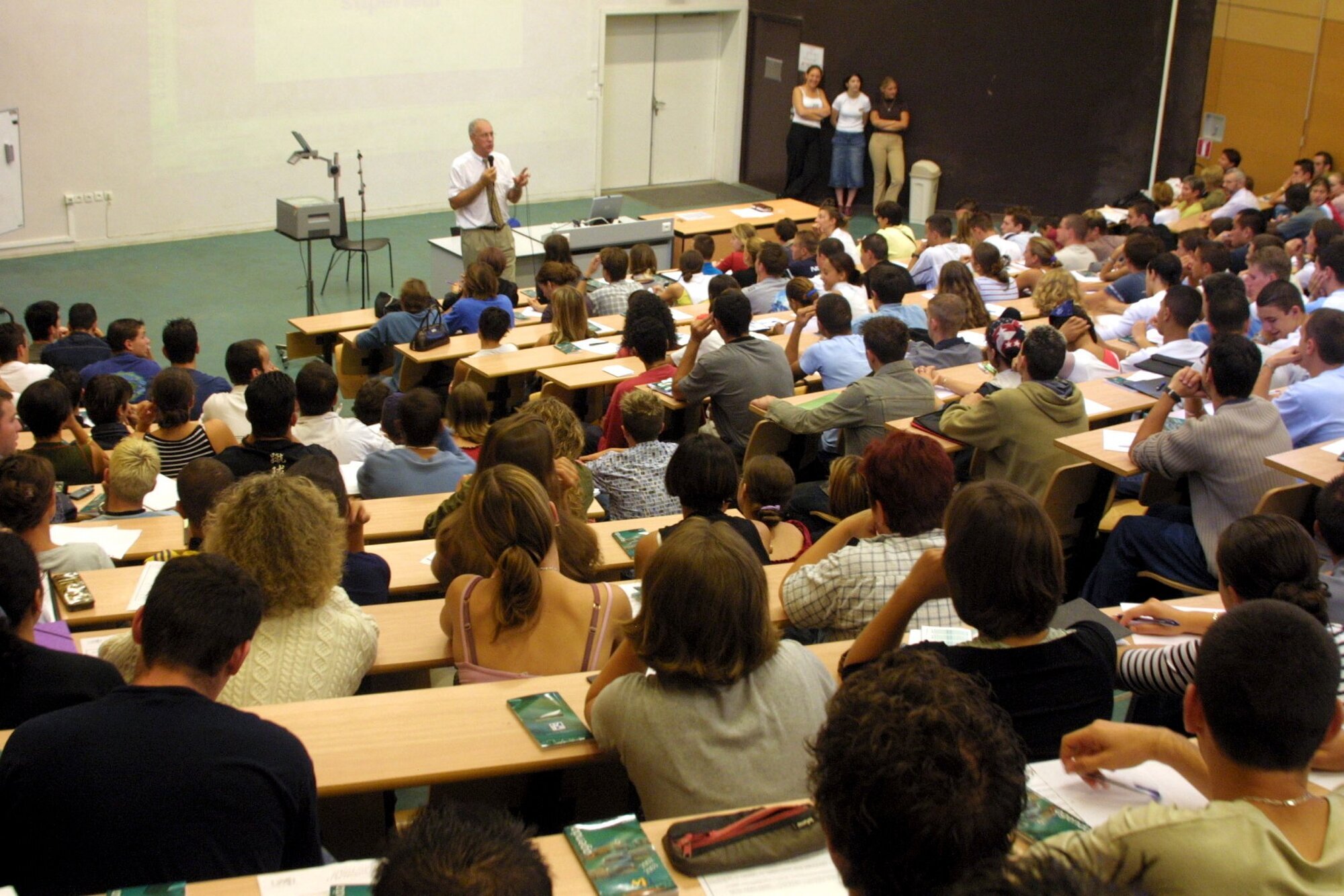 Det var fullt nok i auditoriene da jeg begynte 2013, men ved skolestart i 2015 satt studentene på gulvet i auditoriet for å få plass.