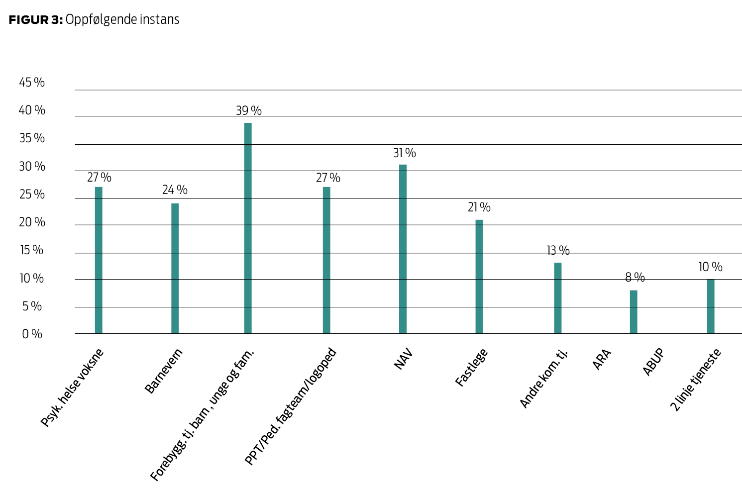 I oppfølgingsmøtene følger man opp det som har skjedd siden siste møtet. Både foreldre og tjenestene involveres. Til slutt evaluerer man tiltakene før man bestemmer seg for veien videre. Én tjeneste får ansvaret for å følge familien helt frem til skolestart. Og de møtes minimum en gang i halvåret. Tjenesten som har oppfølgingsansvar sørger for at foresatte får gitt skriftlig tilbakemelding på hvordan det var å møte oppvekstteamet, vurdere tiltakene og om familien har fått det bedre.
