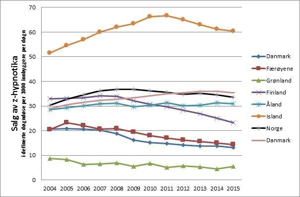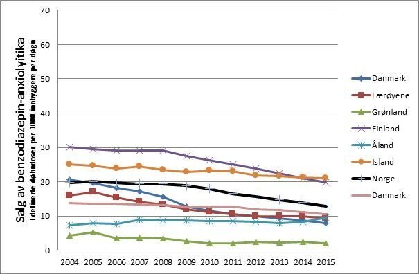 Helsemyndighetene har i mange år jobbet for å forbedre forskrivningen av vanedannende legemidler, herunder benzodiazepiner og z-hypnotika. I stor grad har dette handlet om å redusere forskrivningen. Man har hatt en idé om at skadelig bruk eller avhengighet av disse legemidlene representerte et stort problem i Norge. Men vi har et forbruk av både angstdempende og søvninduserende legemidler som er helt på linje med land det er naturlig å sammenlikne oss med (se figur 1 og 2 under).