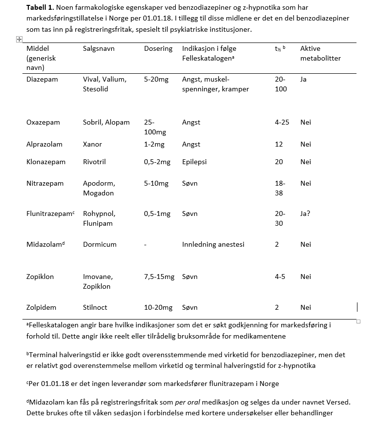Anxiolytika og hypnotika (tabell 1) er gode og effektive medisiner med få bivirkninger om de blir brukt riktig. De gir en god angstdempende og søvninduserende effekt og er relativt sikre i bruk. Dette er også gode medisiner mot kramper og muskelspenninger.