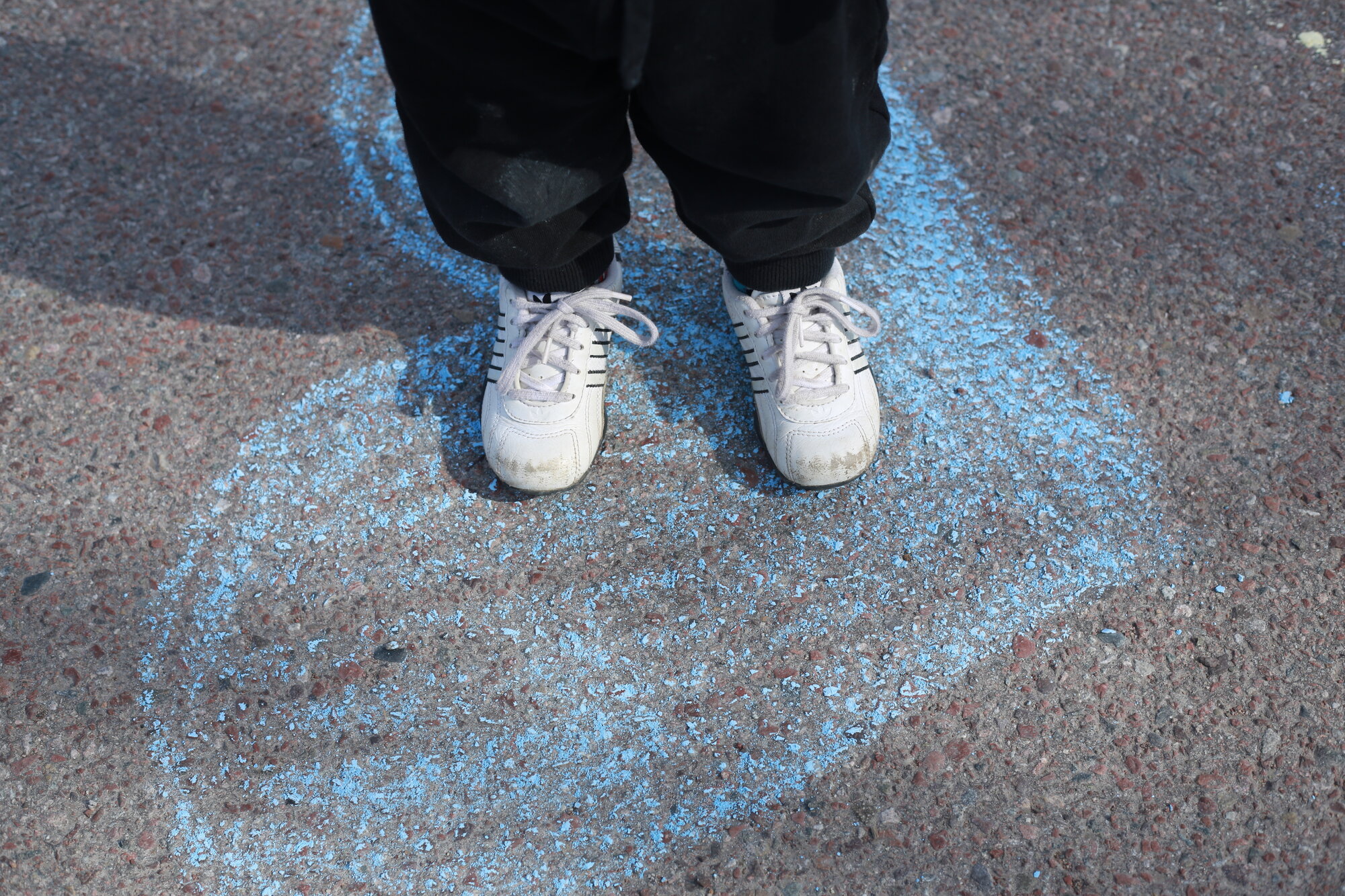 Bildet viser et barn som står på et hjertet - tegnet med kritt - i skolegården.