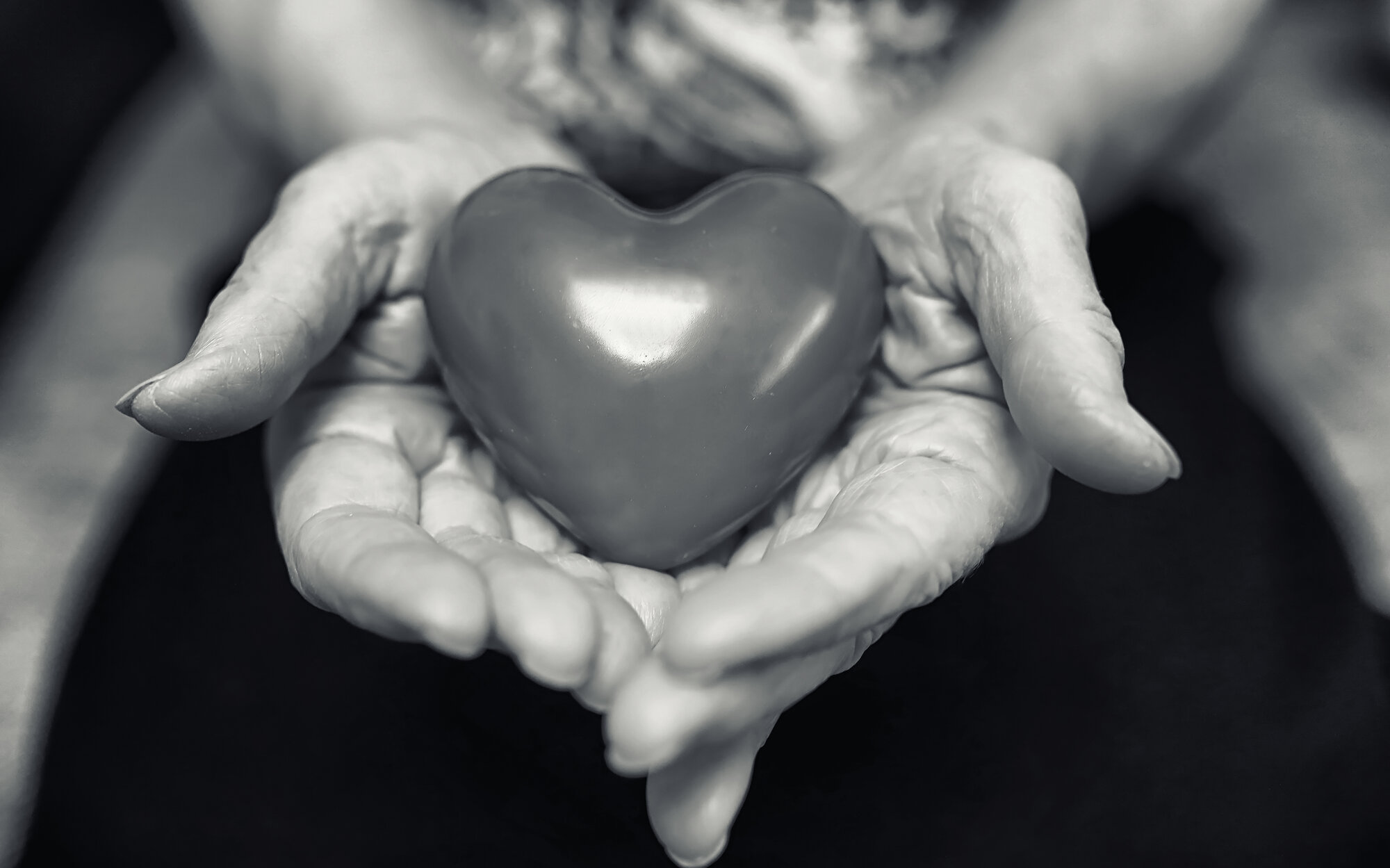 Bildet viser en eldre kvinne som holder et hjerte i hendene.