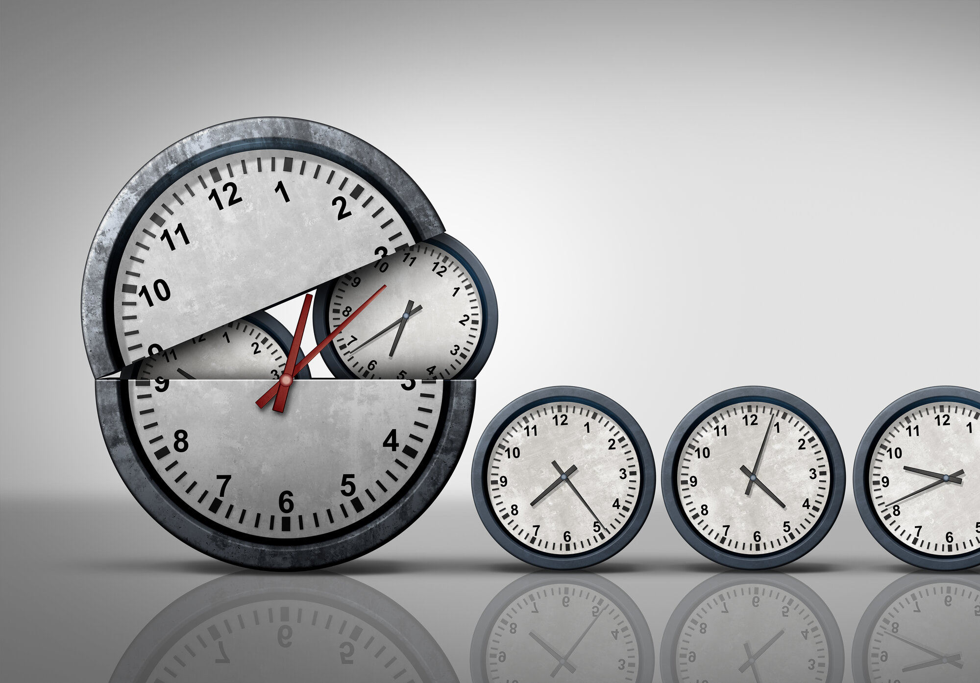 Bildet viser mange klokker som kommer ut av én klokke og illustrerer at tiden ikke strekker til.