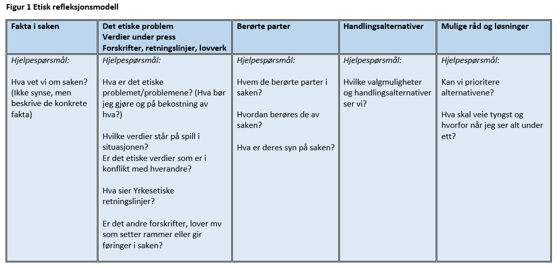 Etisk refleksjonsmodell som verktøy