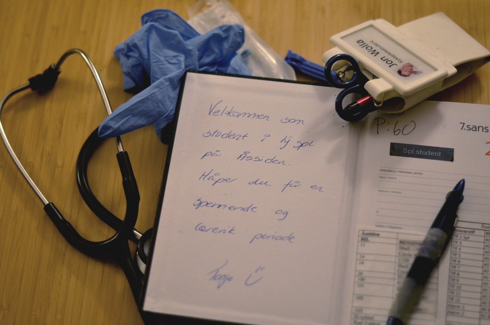 Det begynte allerede første dagen. Inne på vaktrommet var det en hylle med mitt navn på, og der lå den: En stor dagbok, også den merket med mitt navn og en velkomsthilsen på første side: «Velkommen som student i hjemmesykepleien på Åssiden. Håper du får en spennende og lærerik periode! Hilsen Tonje.»