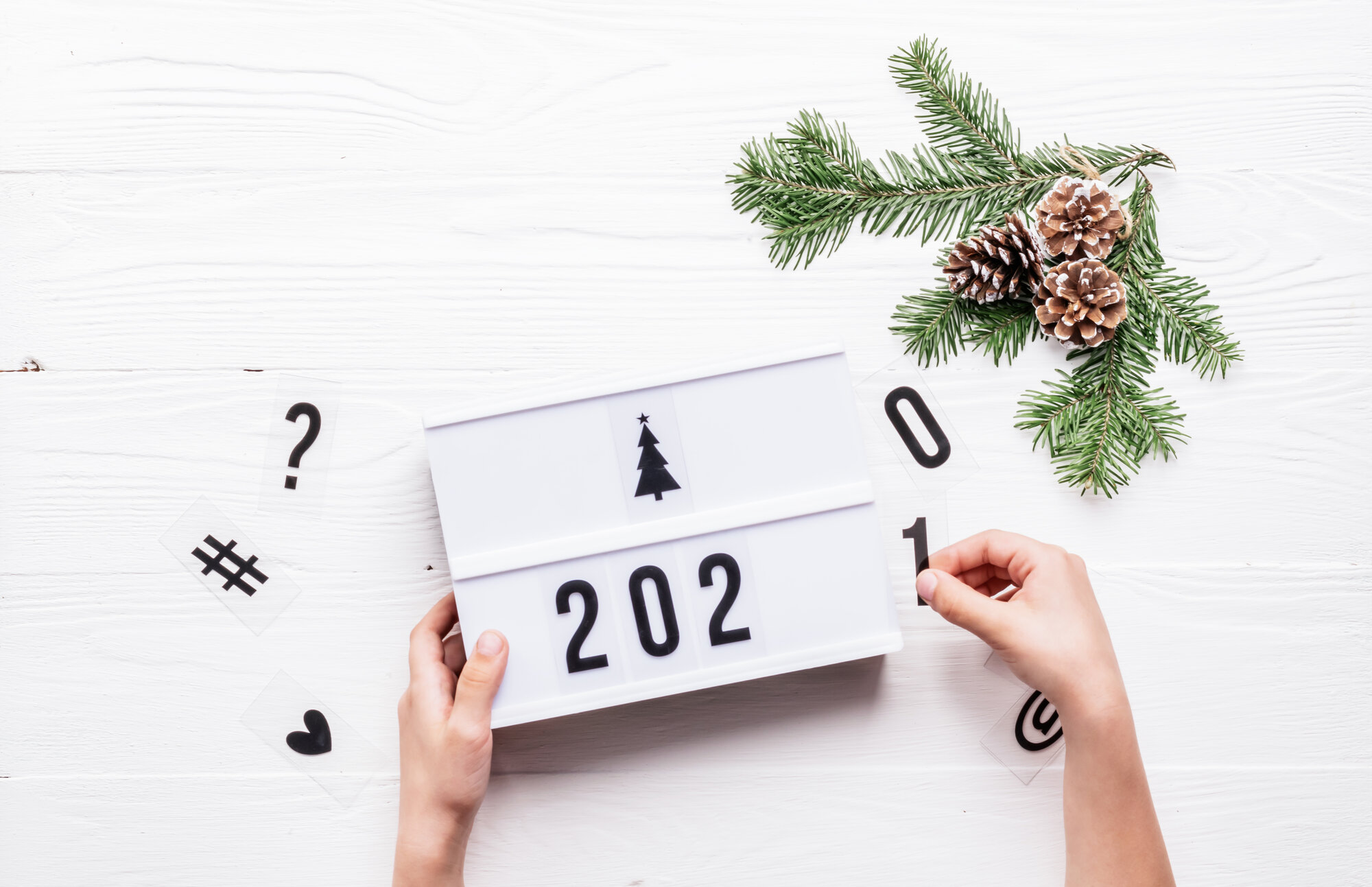 Bildet viser en som bytter ut årstallet 2020 med 2021