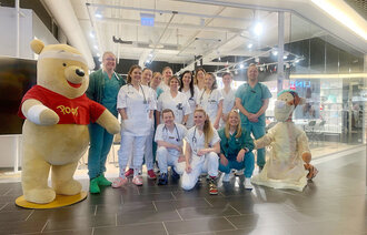 Gjennom lek lærer barna om sykehusmiljøet, og studentene får verdifull erfaring i å kommunisere med de minste.