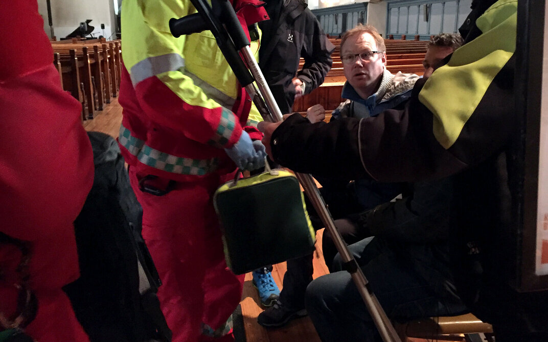 Varselet fra AMK går til flere: Ambulanse, sykehus, lege – og teamet Skjølås og Løvstad. Det er akutt-tur til Vår Frues kirke.